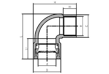 Ev / Ürünler / PP Sıkıştırma Bağlantı / PP montaj üzerine itin / PP dişi dirseği 90 ° P-008